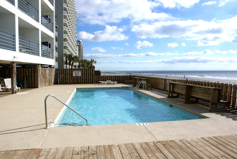 Enjoy a relaxing oceanfront retreat at Carolina Shores Resort, offering both oceanfront and oceanview condos perfect for small families or groups, accommodating 4-6 guests. These 1-2 bedroom, 1 bath condos feature a convenient recessed bunk bed near the kitchen, ideal for extra sleeping space. Guests can enjoy the oceanside swimming pool or take advantage of the on-site elevator and coin-operated laundry. Each condo is fully equipped with central HVAC, an all-electric kitchen, living-dining area, cable TV, dishwasher, microwave, and a private balcony to soak in the stunning views. Parking is limited to 1 vehicle. Golf Carts are not permitted. No pets are allowed. Carolina Shores II is the perfect spot for a peaceful beach getaway!