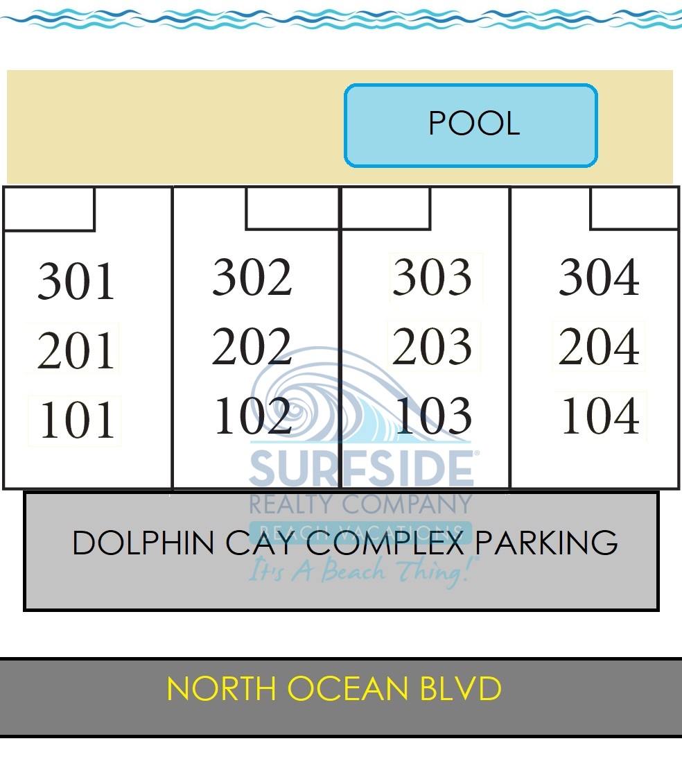 Dolphin Cay offers the ultimate oceanfront experience with stunning views and direct beach access. This beautiful complex features spacious condos that accommodate 6-8 guests, with 2-3 bedrooms and 2 bathrooms. Each condo is equipped with central HVAC, an all-electric kitchen, a living-dining area, cable TV, washer/dryer, dishwasher, and microwave. Enjoy the fresh sea breeze from your private balcony, with first-floor units offering direct access to the pool area from the porch. The complex also boasts an oceanside swimming pool, perfect for relaxing after a day at the beach. Golf Carts are not permitted. No pets are allowed. Recreational vehicles, including motorcycles or trailers, are not permitted on the premises. Dolphin Cay is the perfect oceanfront getaway for your next vacation!