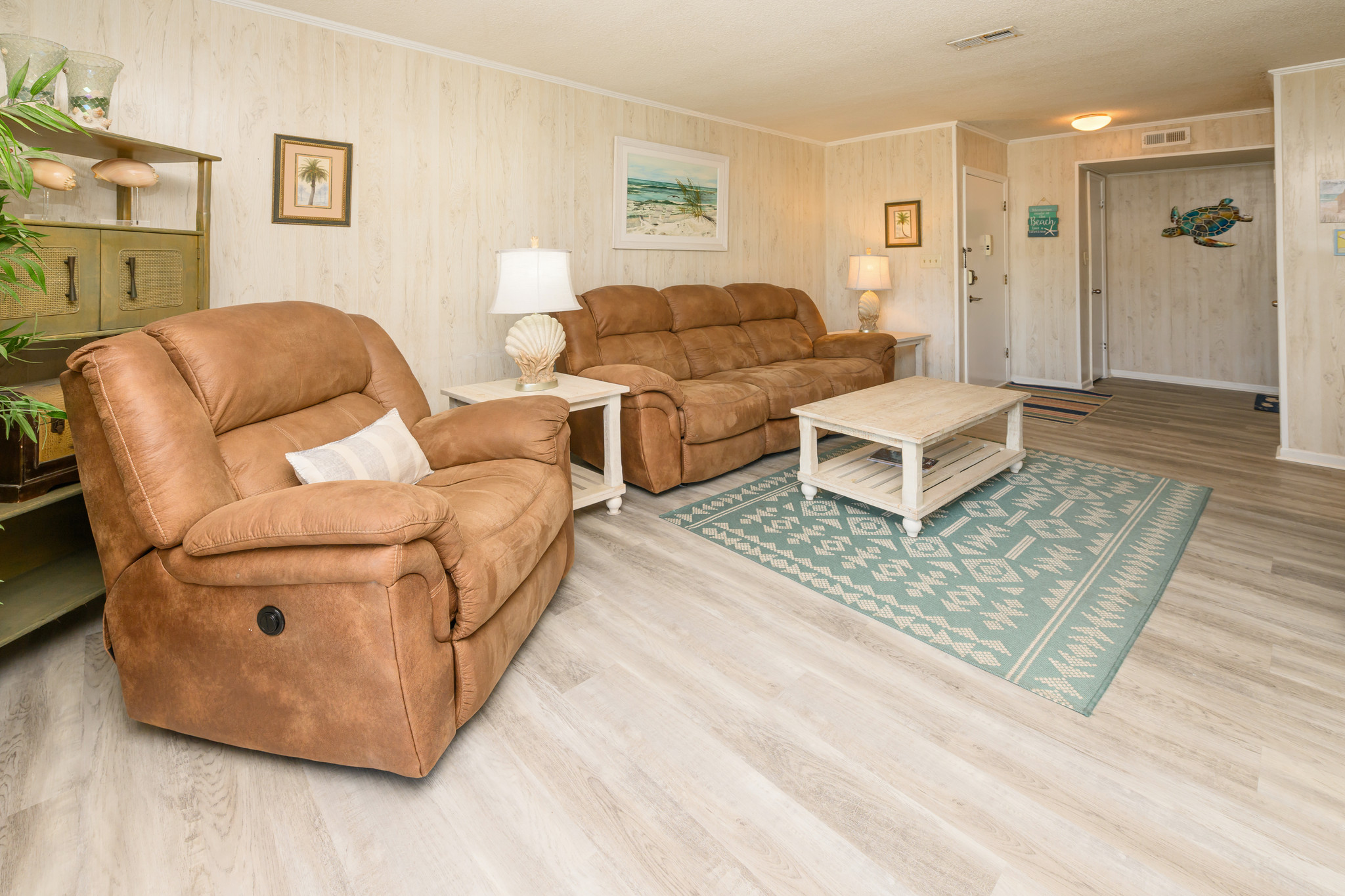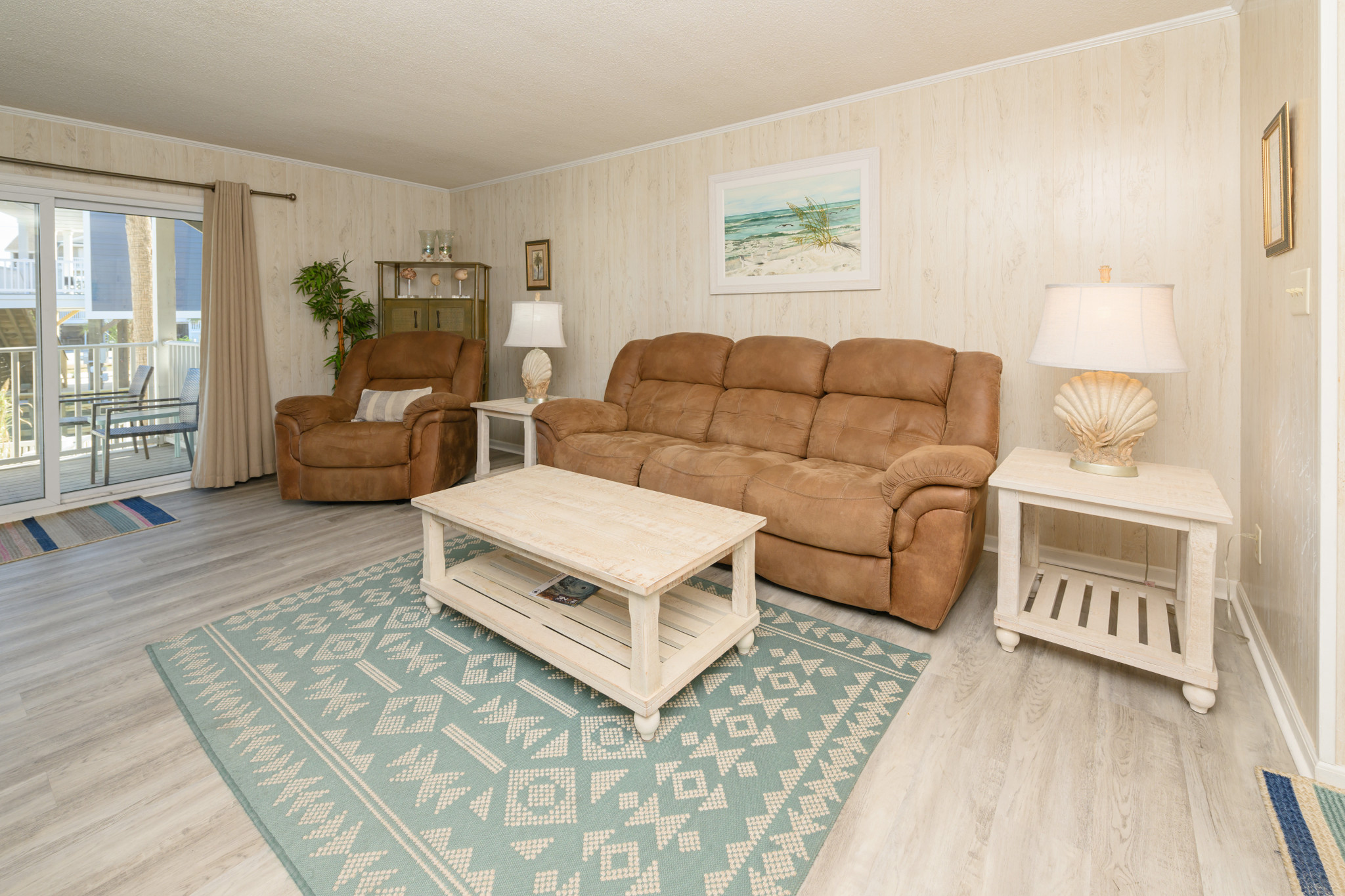 Get ready for your unforgettable stay at Floral Villa E17, a hidden paradise with a large shared pool and just a minute walk from the beach! This first-floor unit has undergone recent renovations, including an updated kitchen with new stainless steel appliances and elegant granite counters. Sink into the plush reclining chair, lounge on the cozy sofa in the living space, or gather around the dining area, perfectly equipped for every family. Wait until you see the two shaded patios, your personal haven of calm. The spacious rear patio not only overlooks the pool but also offers a sneak peek of the ocean!