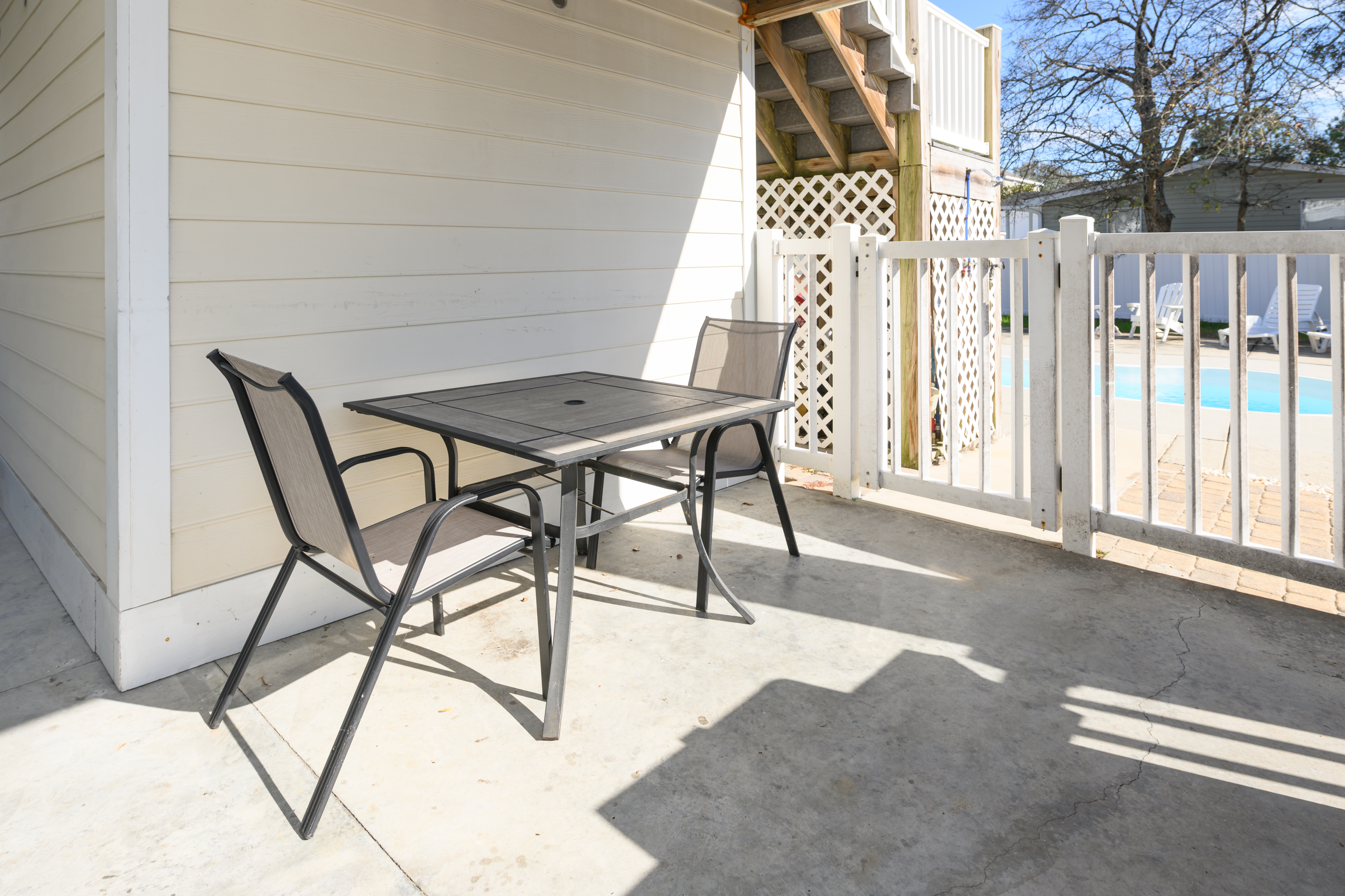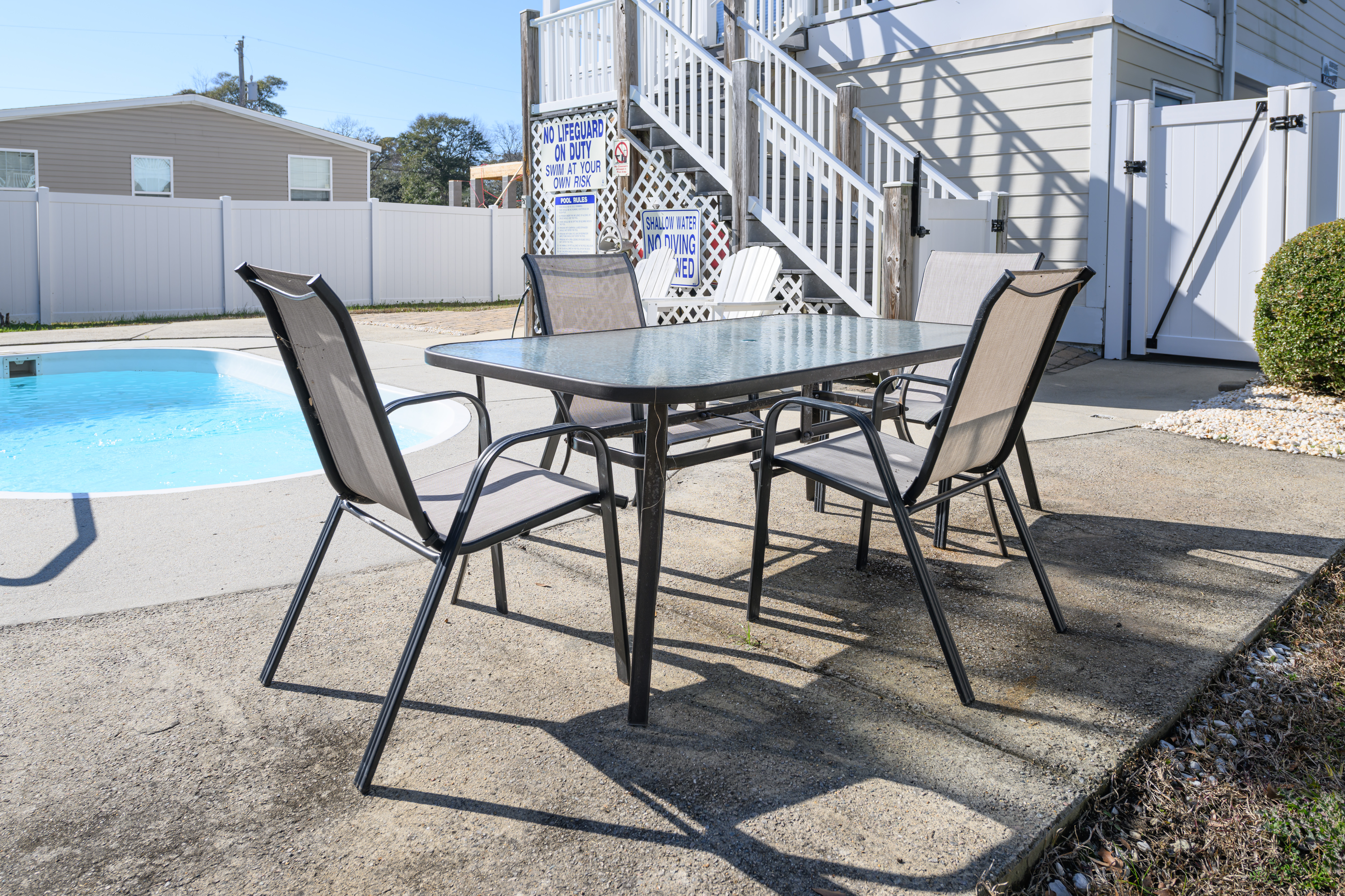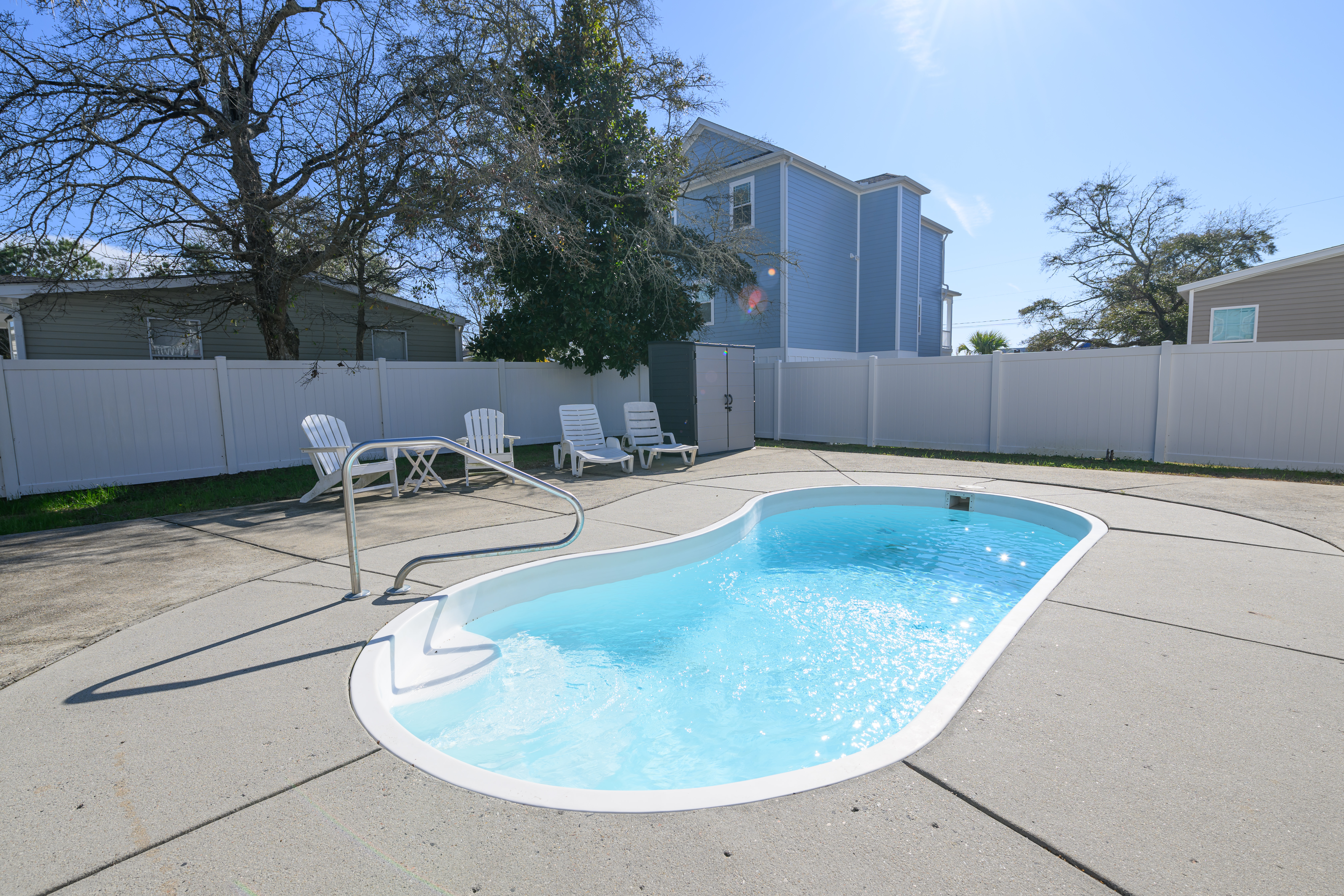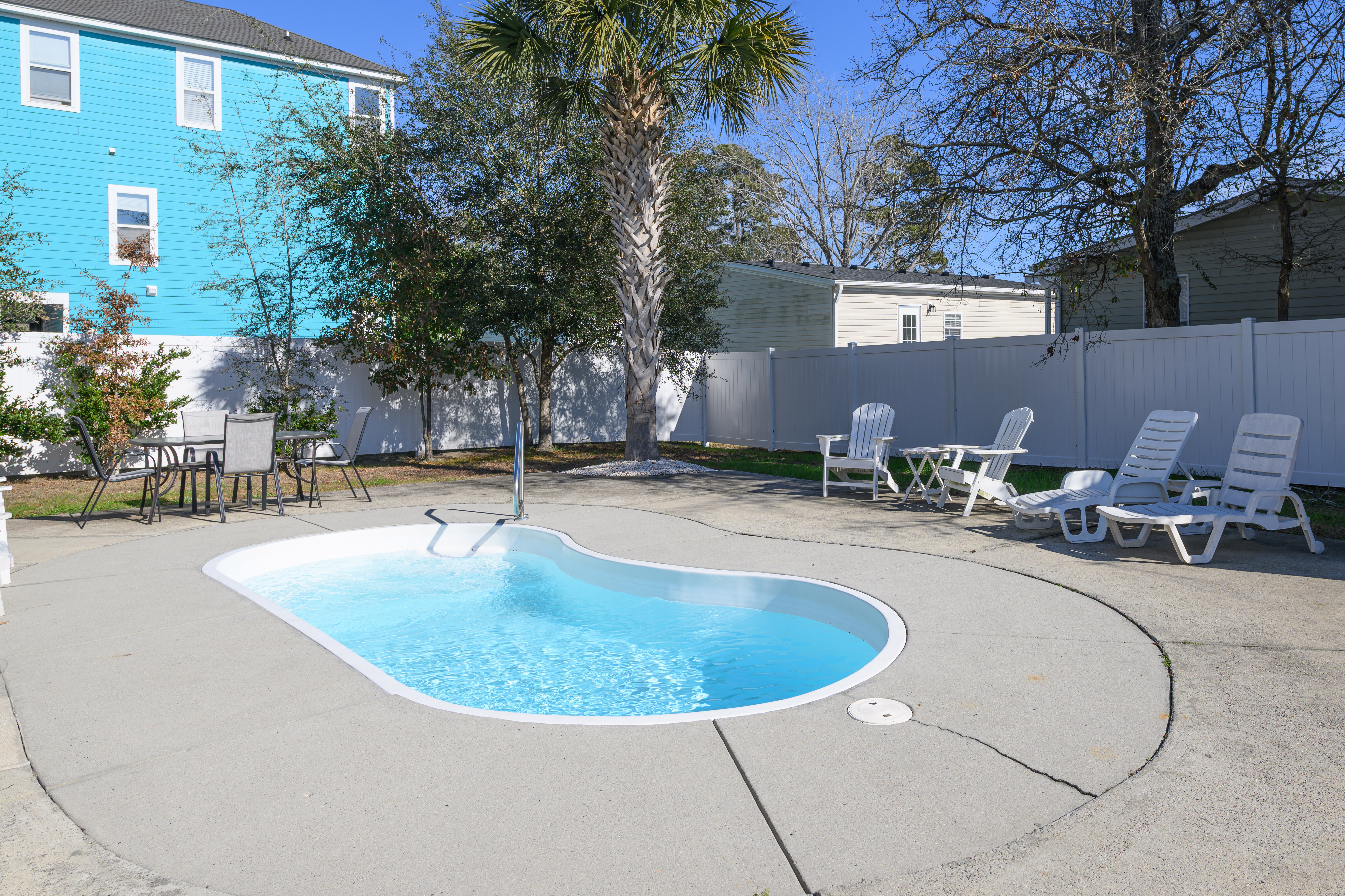 Private Pool - Professionally Maintained, Outdoor Shower (Hot and Cold), Covered Exterior Porch, Paved Covered & Uncovered Parking, Owner-Provided Charcoal Grill (Guest is Responsible for Cleaning Between Every Use & Supplies/Charcoal Refills) - Not Professionally Maintained, Professionally Landscaped Grounds, Non Smoking Environment, Pet Friendly (50 lb Limit, Max 2 Dogs, Additional Fees Apply). This property has three exterior surveillance cameras located in the carport overlooking the driveway, entrance to the backyard, and side yard.