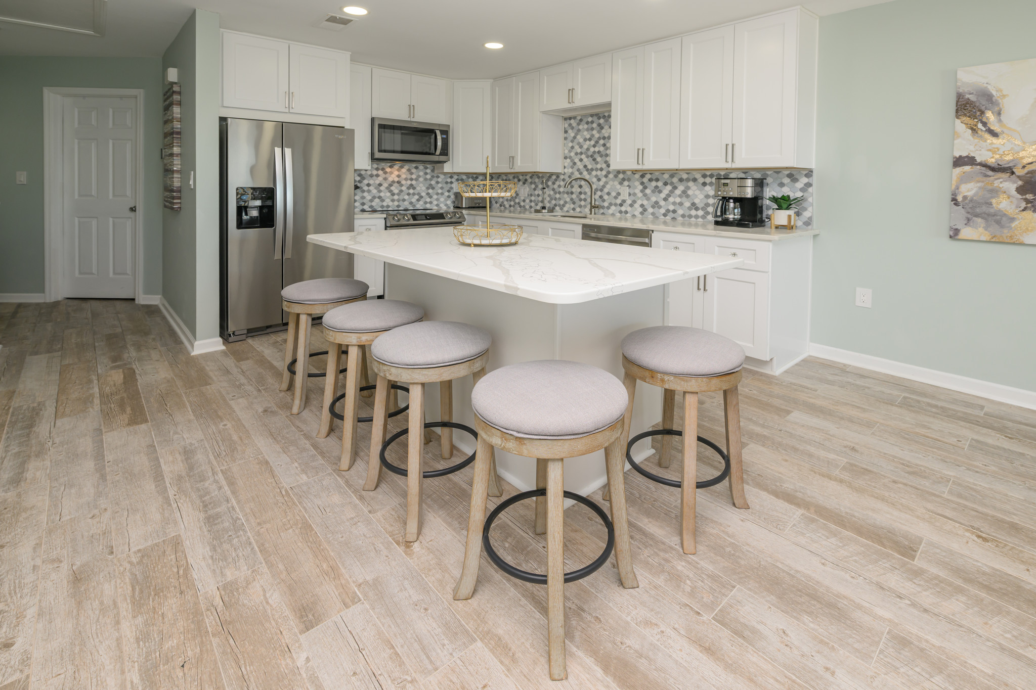 Internet, Heat & Central A/C, Televisions, Washer & Dryer, Range & Oven, Refrigerator, Dishwasher, Pillows & Comforters, Basic Kitchen Amenities. All bedding will have a mattress cover, pillows and comforter or bedspread. We also provide a small bar of soap at each sink, one roll of toilet paper in each bathroom, and a trash bag in each trashcan. Guests should be prepared to provide any of these items as needed beyond what we supply. Guests are also responsible for providing detergents, spices, salt & pepper, sugar, etc as needed.