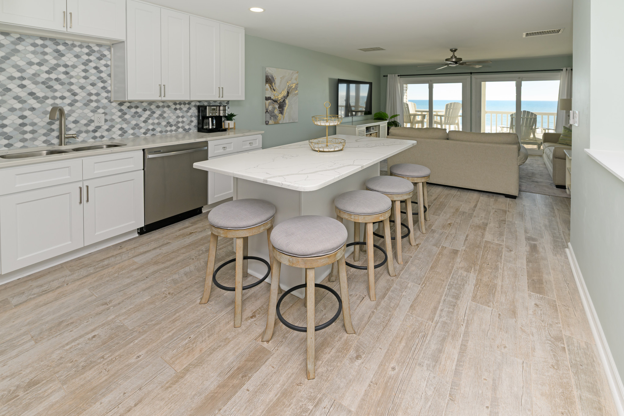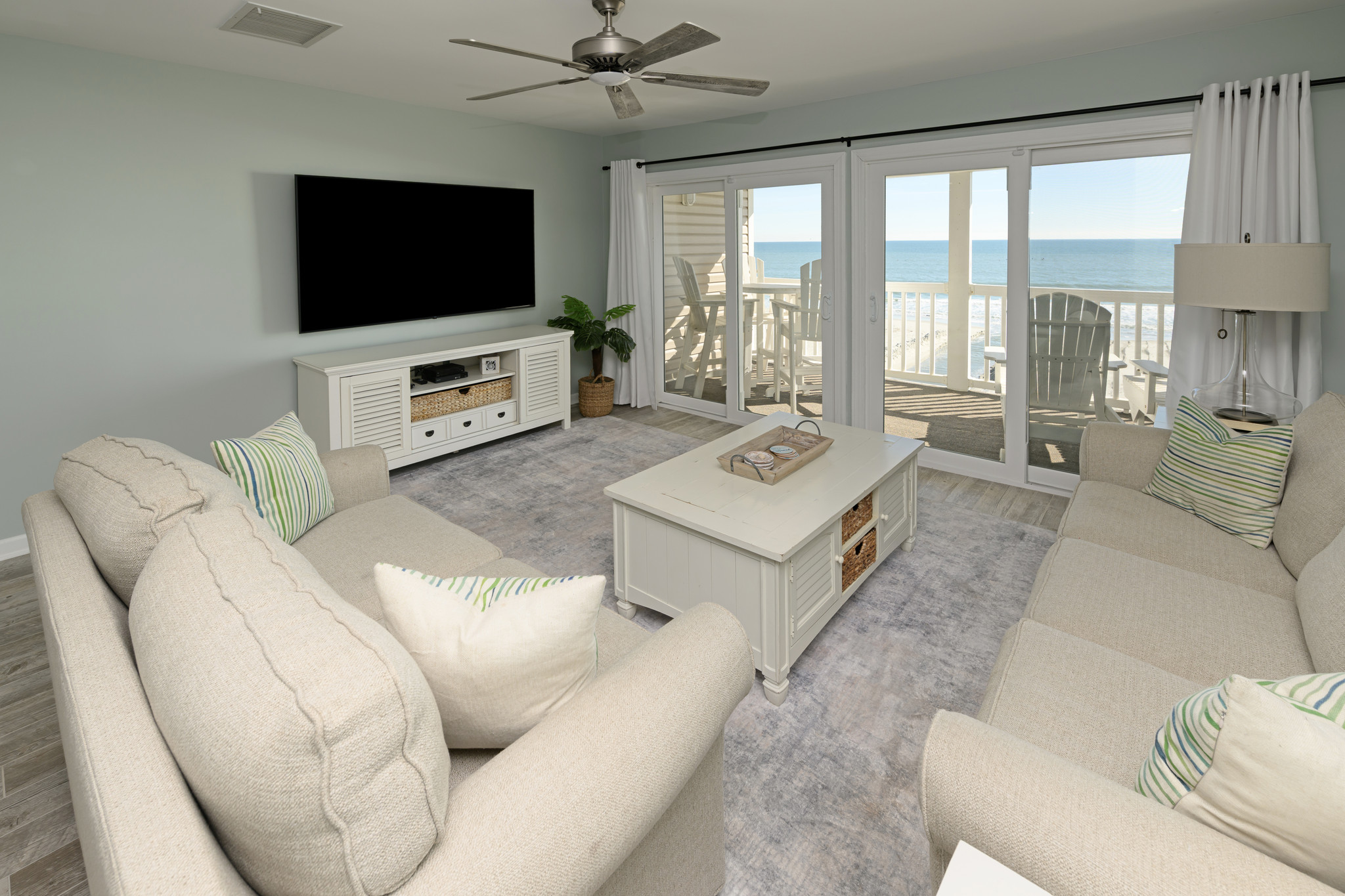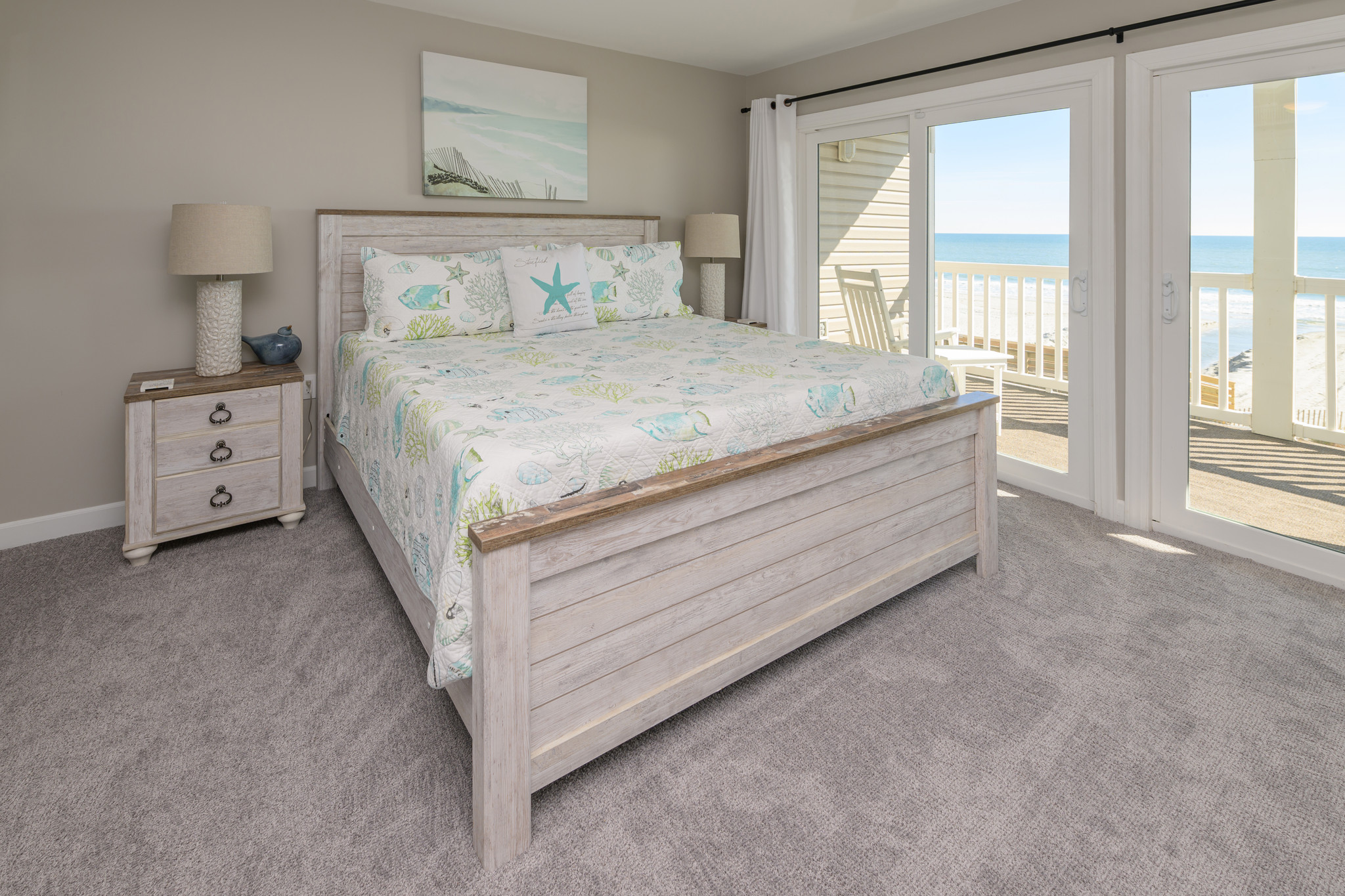 Ned's Cove #5 is a beautifully updated and spacious oceanfront condo, thoughtfully designed for comfort and relaxation. This custom two level layout is truly unique, with each floor offering its own private oceanfront balcony so you can enjoy stunning views of the Atlantic from sunrise to sunset.The entire lower level is dedicated to the master bedroom and bathroom suite, creating a private retreat with plenty of room to unwind after a day at the beach. Upstairs, you will find an open and inviting living area that is perfect for gathering with family and friends.
