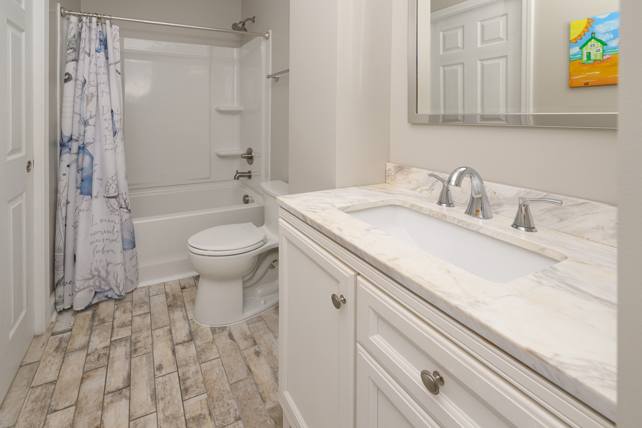 Main Floor (One): 1 Full Bath with hall and bedroom access