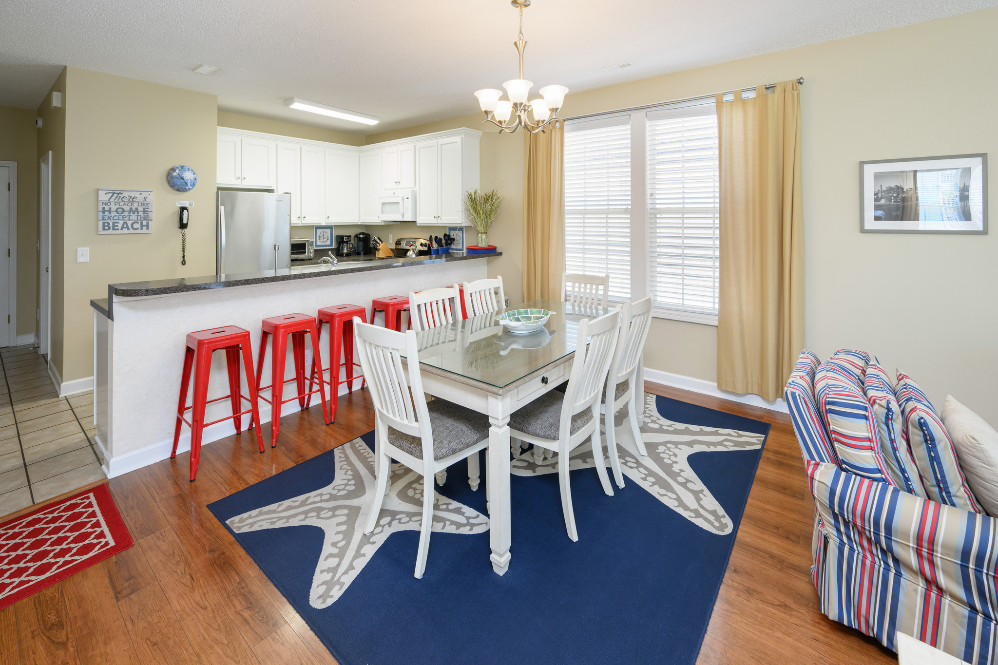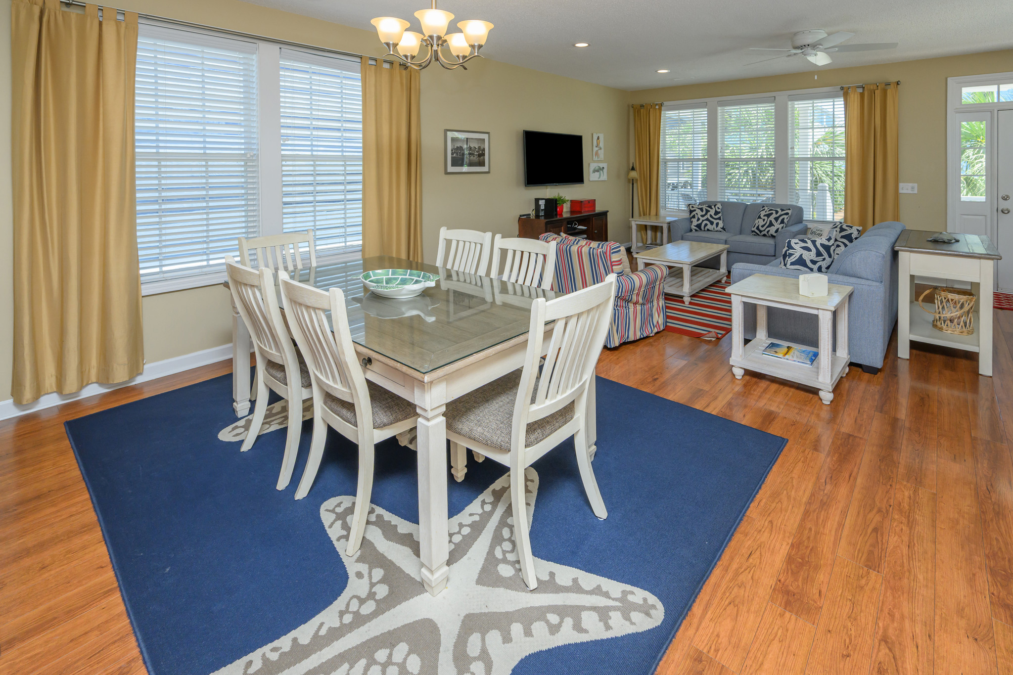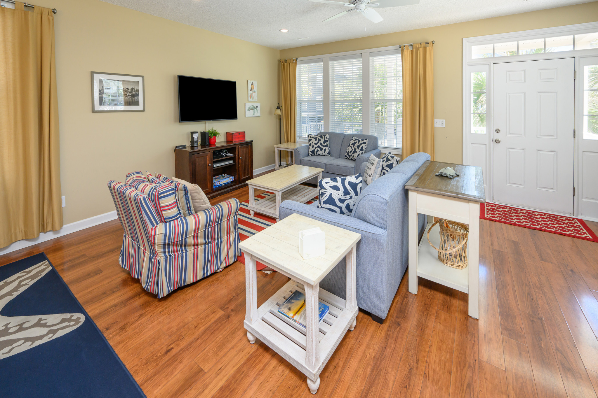 Internet, Televisions, Heat & Central A/C, Ceiling Fans Throughout, Washer & Dryer, Range & Oven, Refrigerator, Dishwasher, Iron & Ironing Board, Basic Kitchen Amenities. All bedding will have a mattress cover, pillows and comforter or bedspread. We also provide a small bar of soap at each sink, one roll of toilet paper in each bathroom, and a trash bag in each trashcan. Guests should be prepared to provide any of these items as needed beyond what we supply. Guests are also responsible for providing detergents, spices, salt & pepper, sugar, etc as needed.