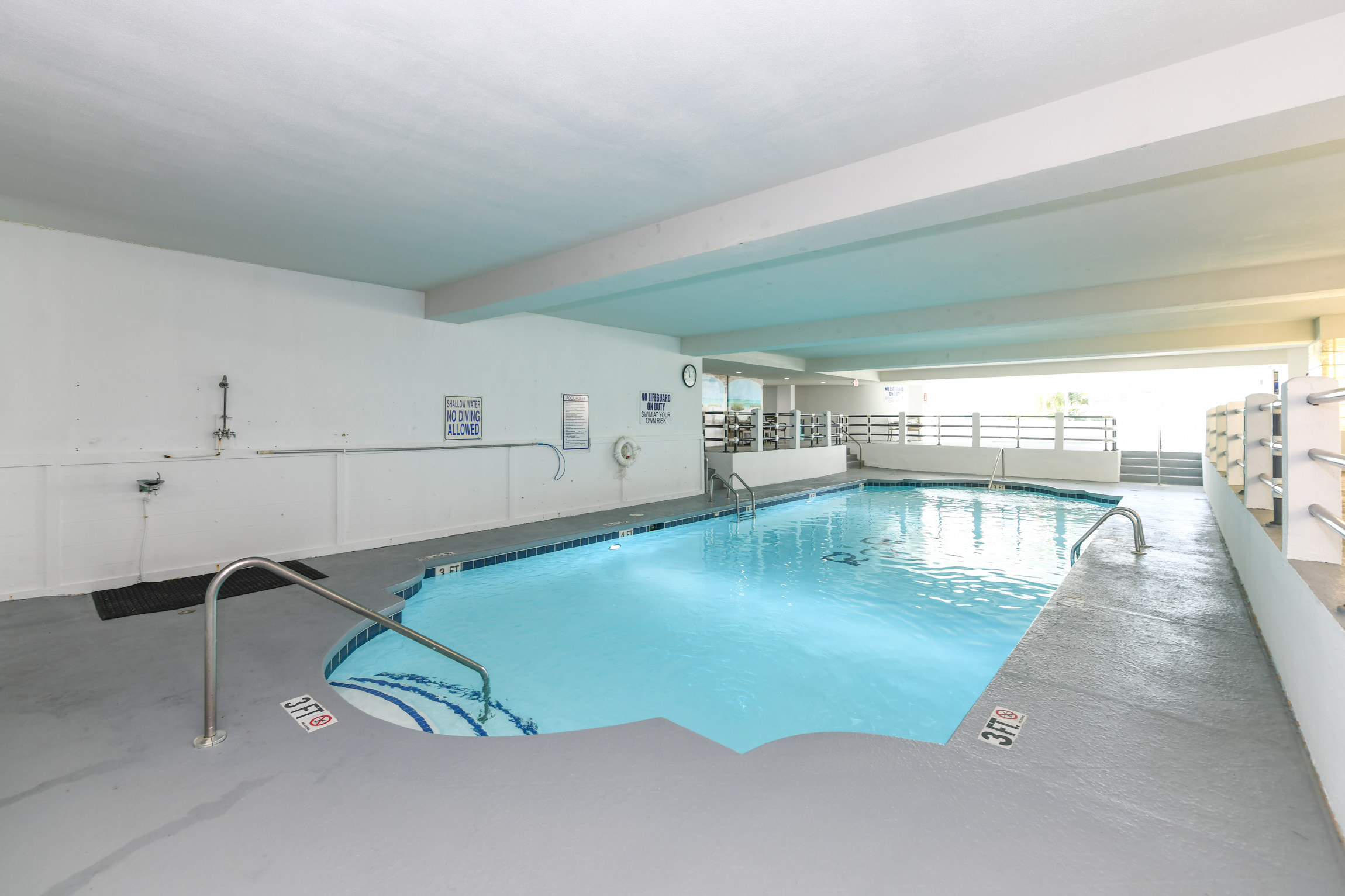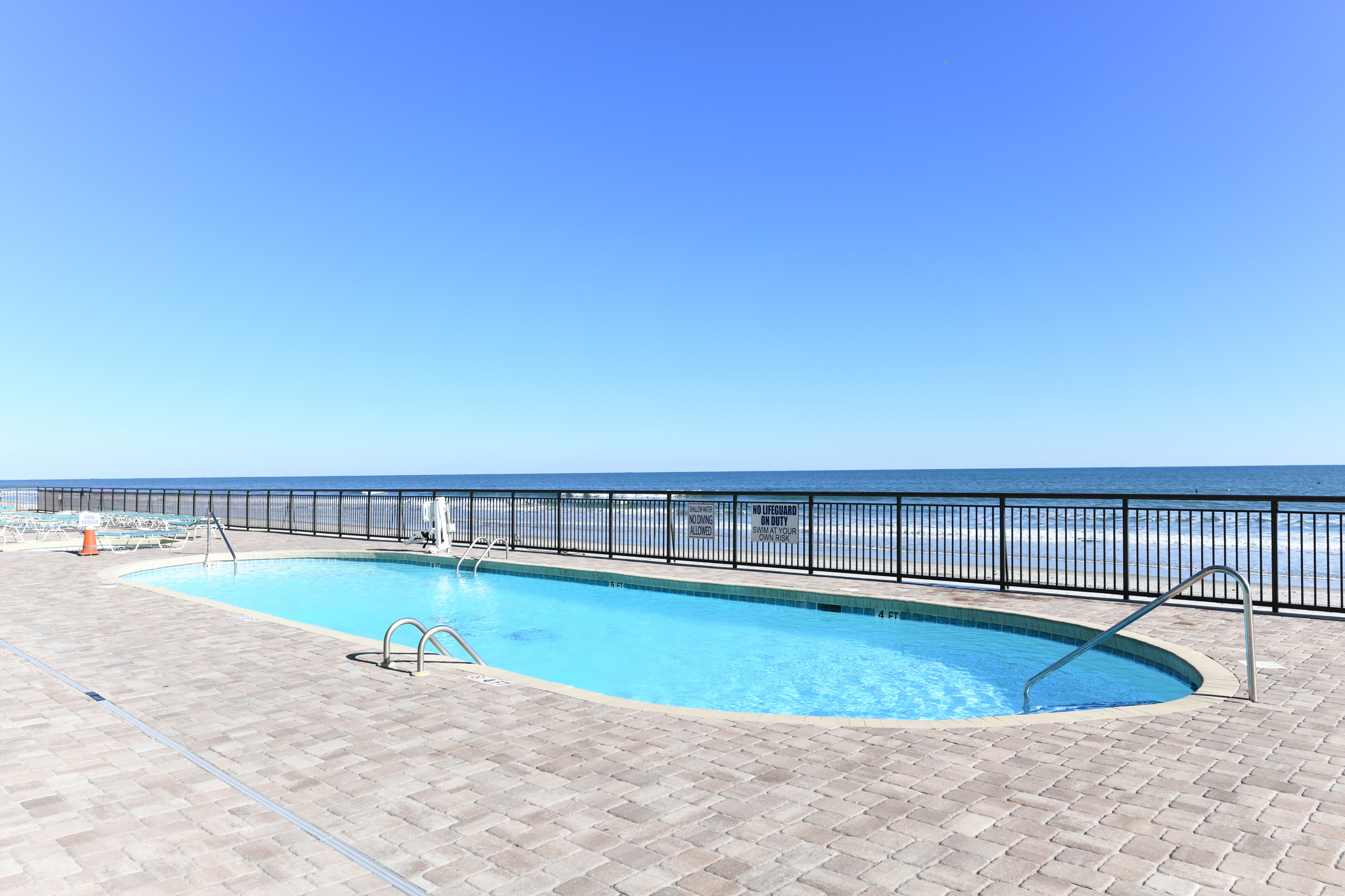 7th Floor Oceanfront End Unit, Community Outdoor Pool (Open Seasonally from April 1st-October 1st), Indoor Pool and Hot Tub - Professionally Maintained, Elevator, Private Balcony, 1 Parking Spot - Motorcycles Allowed (Count as 1 Parking Spot) but Trailers Not Permitted - Parking Garage (6'9" Clearance), Outdoor Shower, Non-Smoking Unit, No Pets Allowed. This property has 1 exterior surveillance camera located at the front door.