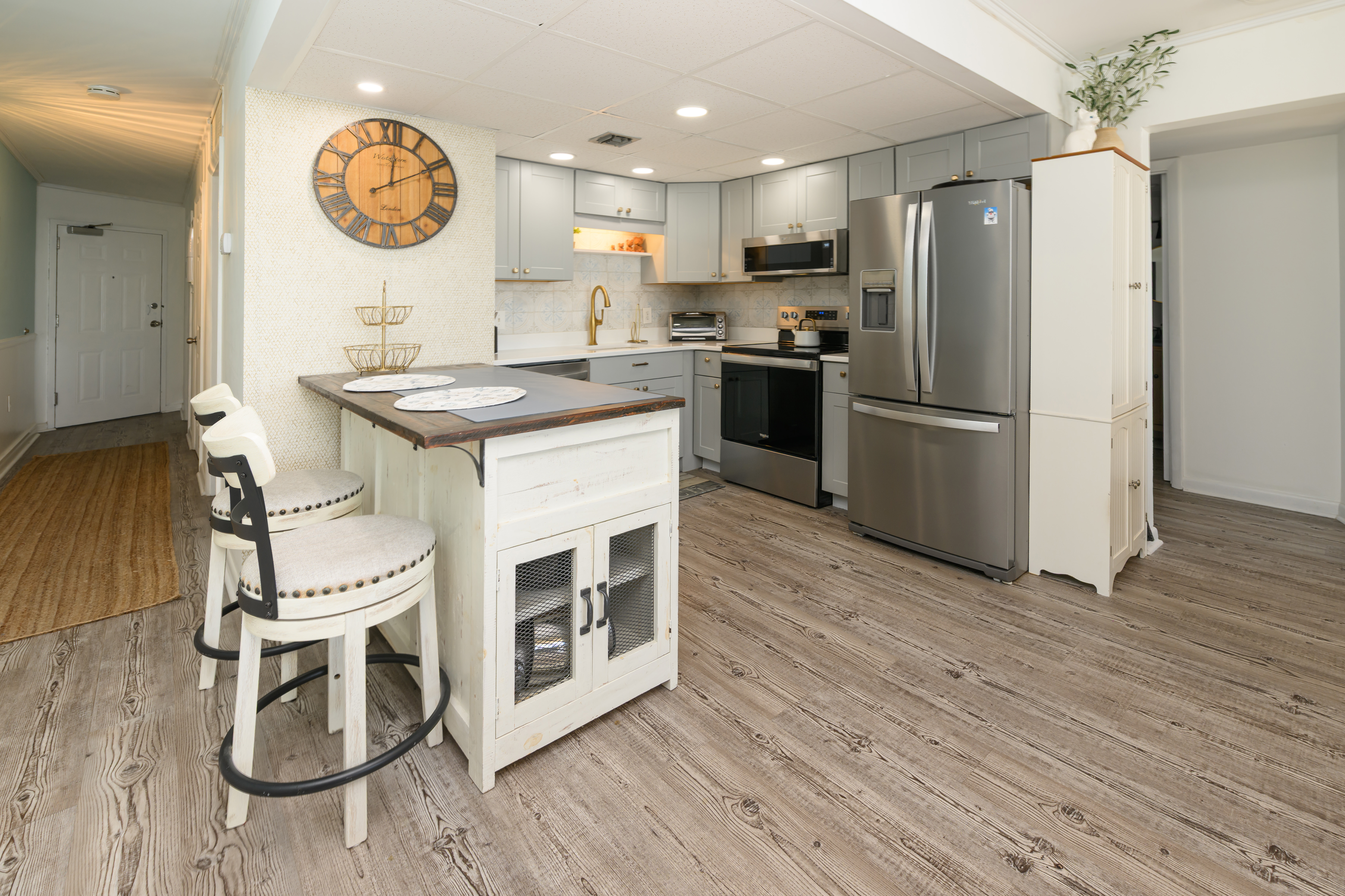 Internet, Televisions, Heat & Central A/C, Washer & Dryer, Range & Oven, Refrigerator, Dishwasher, Iron & Ironing Board, Basic Kitchen Amenities. All bedding will have a mattress cover, pillows and comforter or bedspread. We also provide a small bar of soap at each sink, one roll of toilet paper in each bathroom, and a trash bag in each trashcan. Guests should be prepared to provide any of these items as needed beyond what we supply. Guests are also responsible for providing detergents, spices, salt & pepper, sugar, etc as needed.