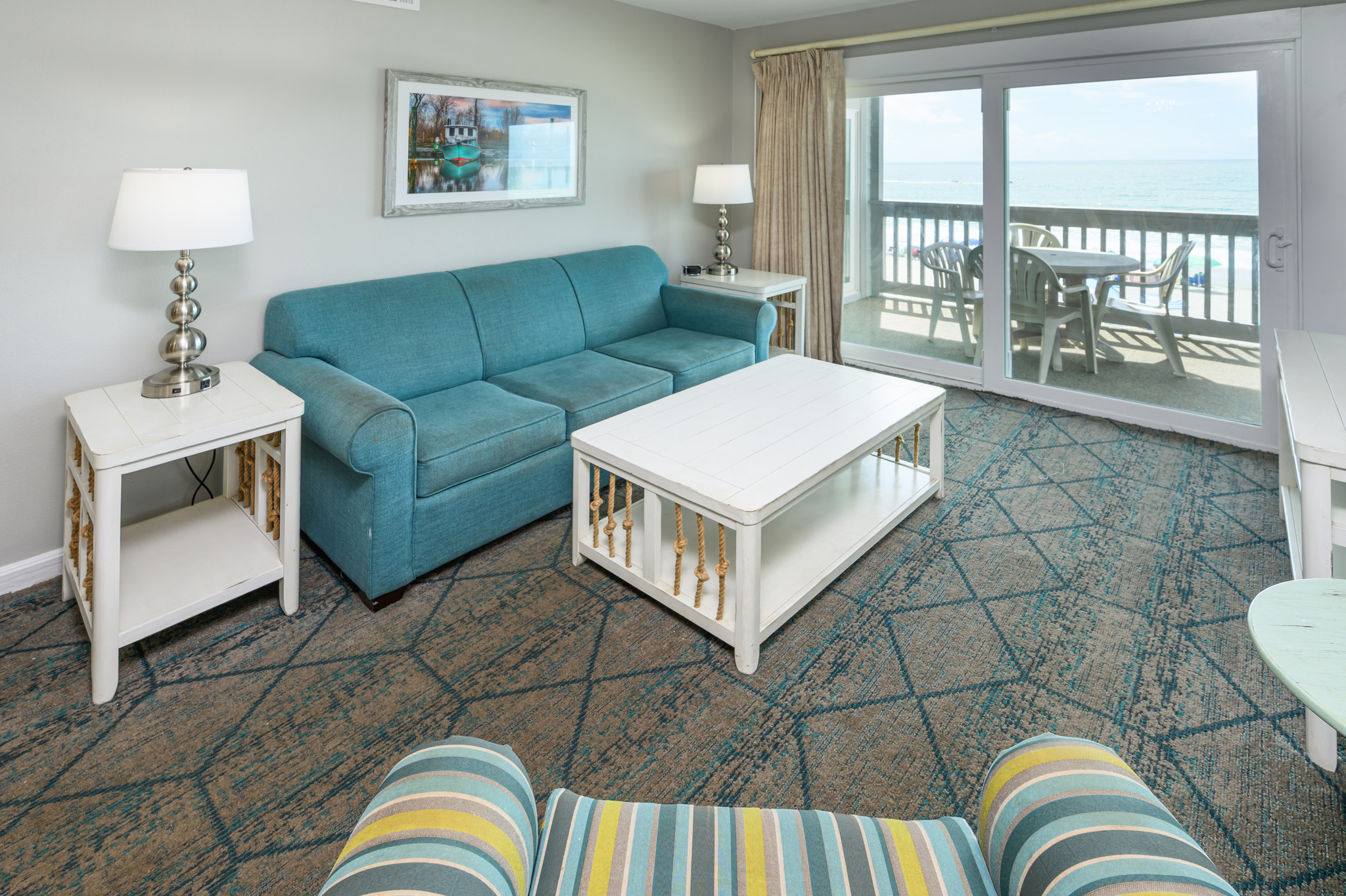 Enjoy breathtaking oceanfront views from this beautiful 2-bedroom condo, perfectly situated just 0.7 miles from the Surfside Beach Fishing Pier. This inviting retreat features direct beach access and convenient elevator service. Ideal for a family getaway or couples' retreat, the condo offers comfortable living spaces, a fully equipped kitchen, and a private balcony where you can savor sunrise coffee or evening cocktails over the Atlantic.