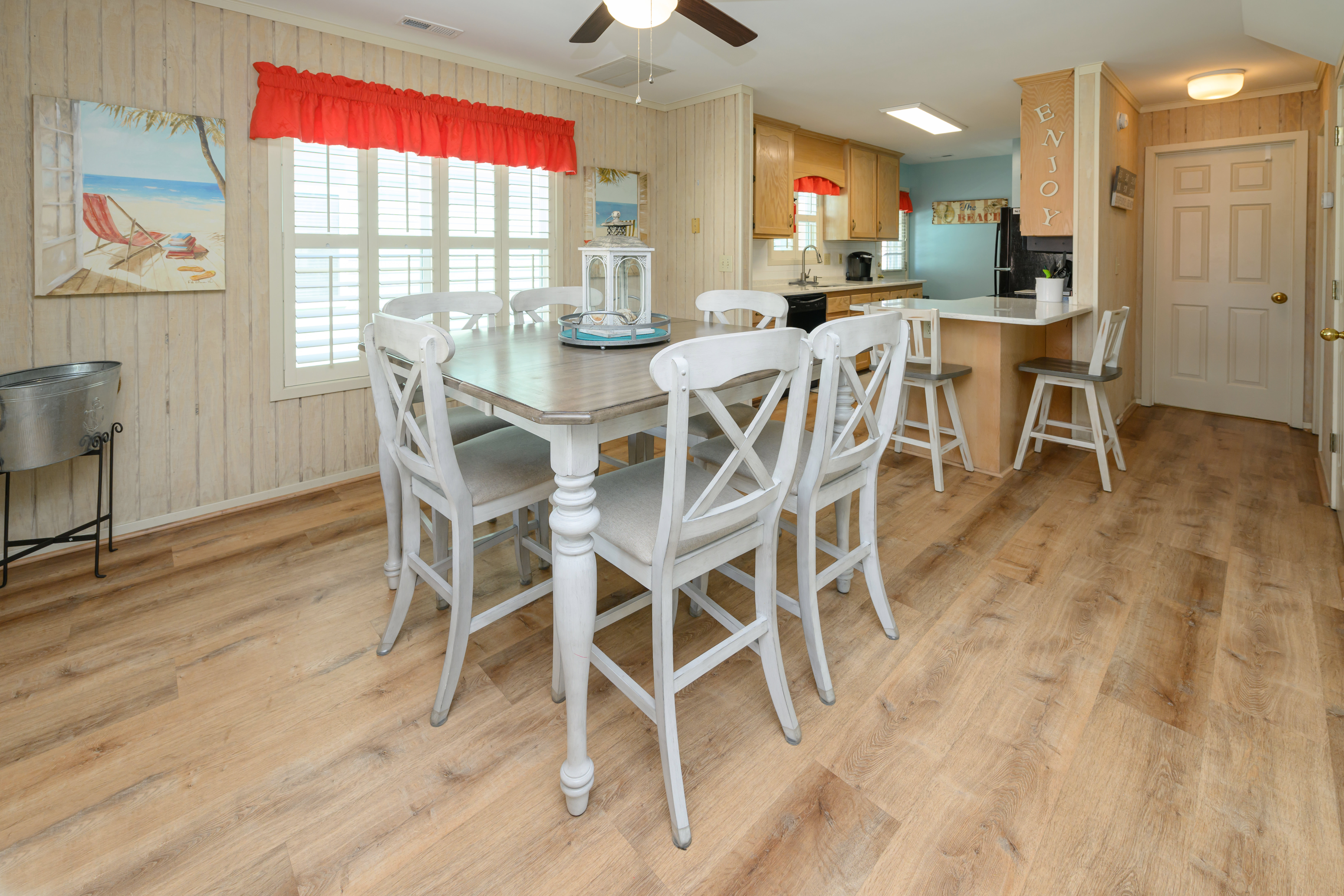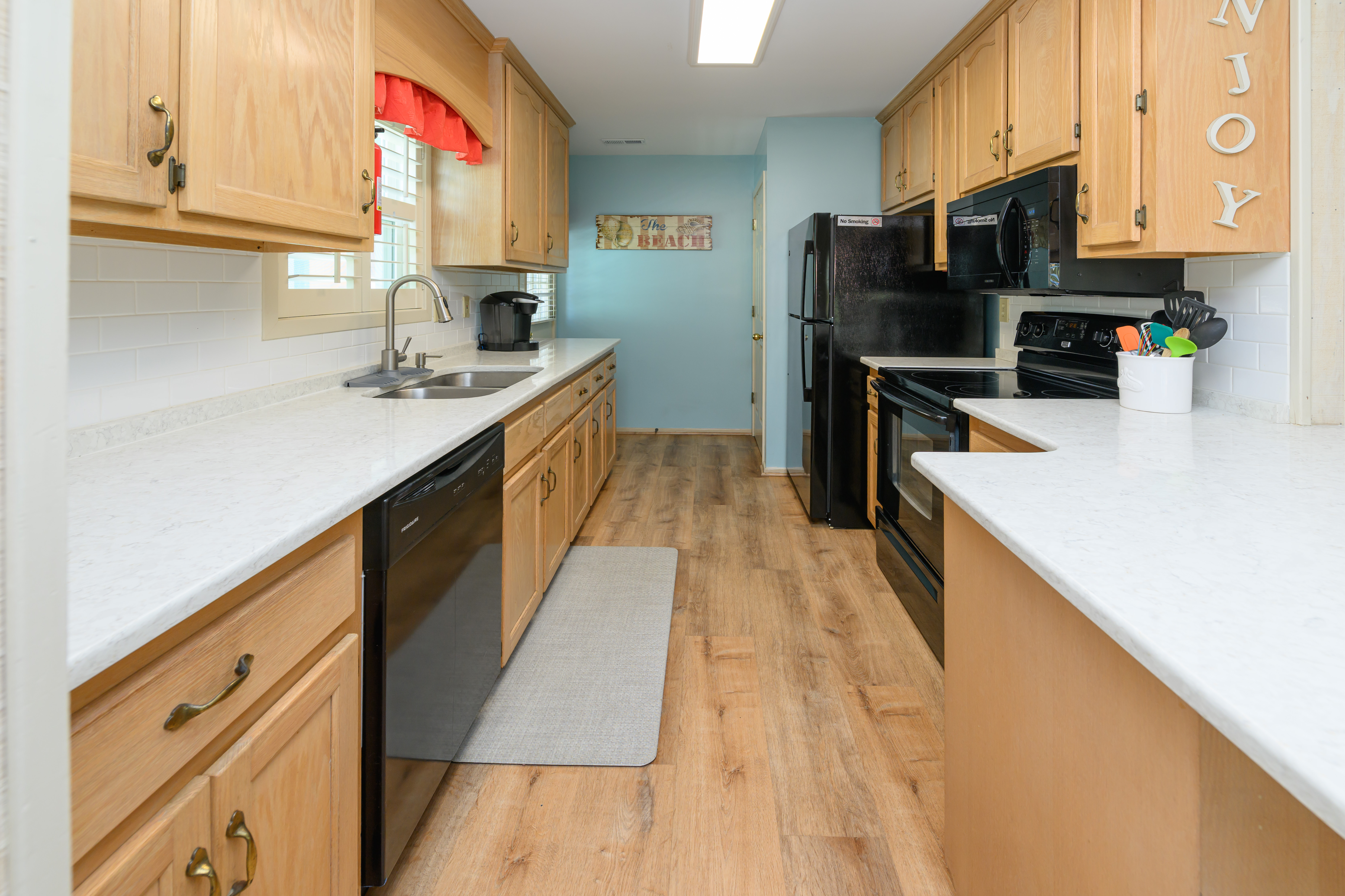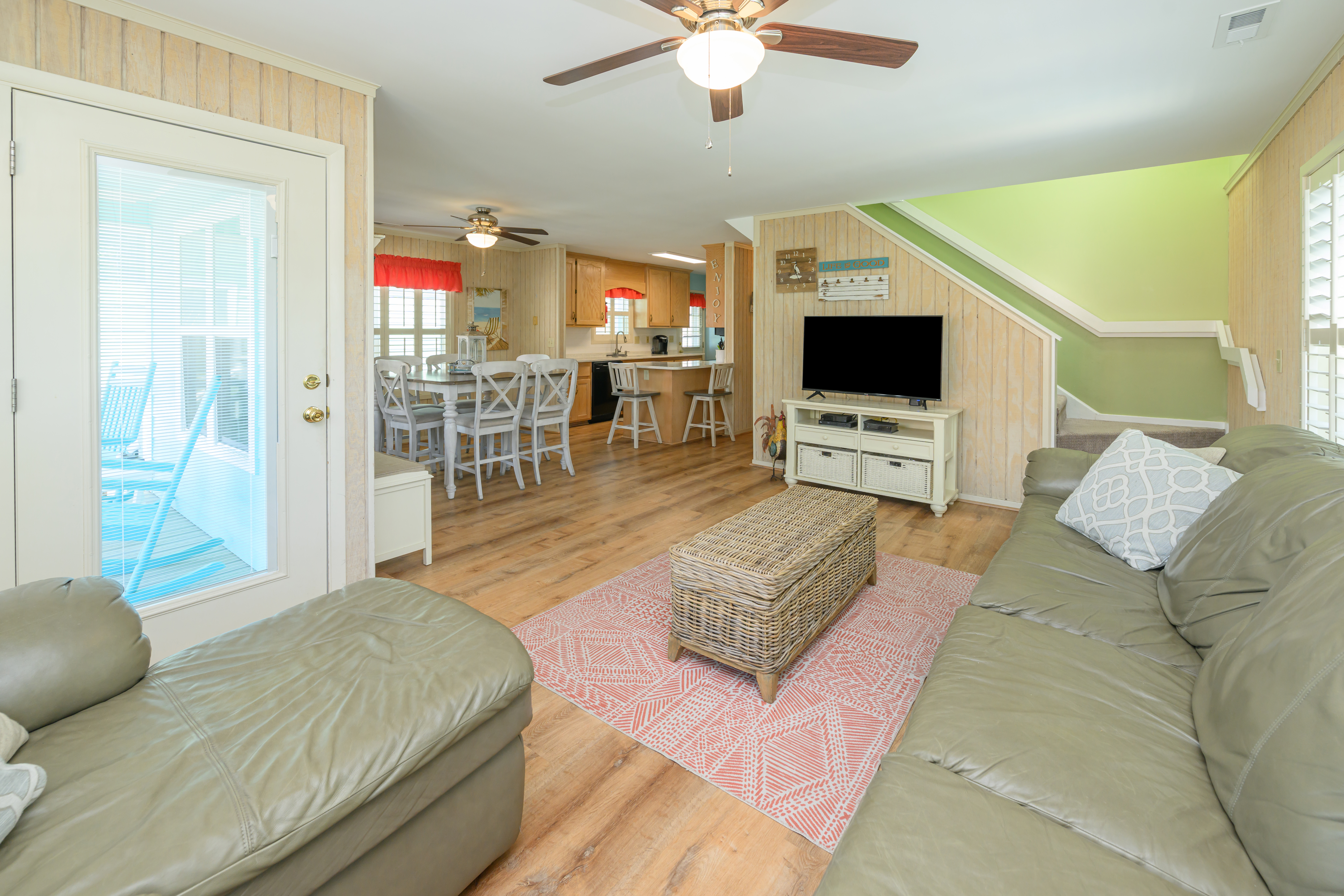 Internet, Televisions, Heat and Central A/C, Ceiling Fans, Washer and Dryer, Range and Oven, Microwave, Refrigerator, Dishwasher, Basic Kitchen Amenities. All bedding will have a mattress cover, pillows and comforter or bedspread. We also provide a small bar of soap at each sink, one roll of toilet paper in each bathroom, and a trash bag in each trashcan. Guests should be prepared to provide any of these items as needed beyond what we supply. Guests are also responsible for providing detergents, spices, salt and pepper, sugar, etc., as needed.
