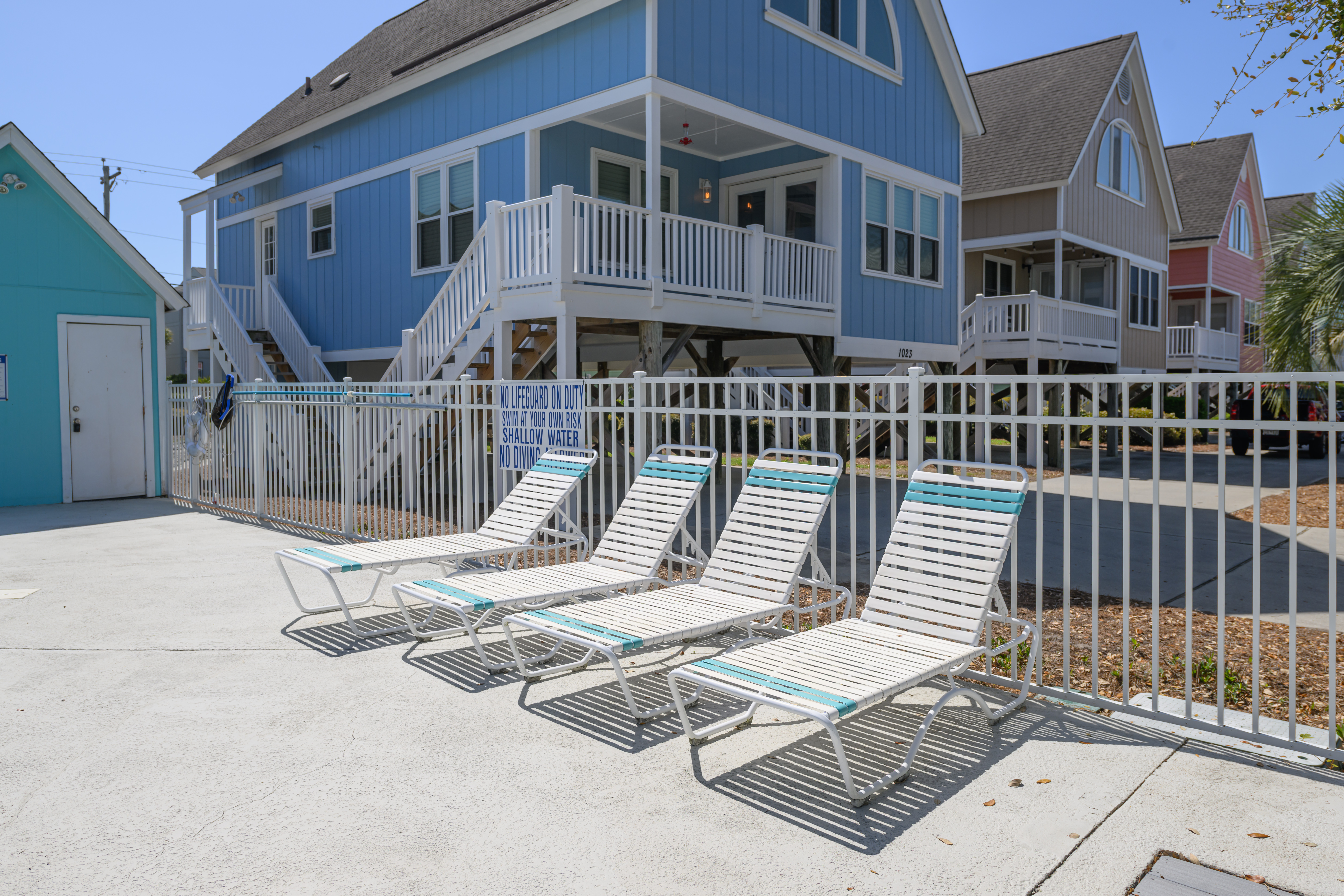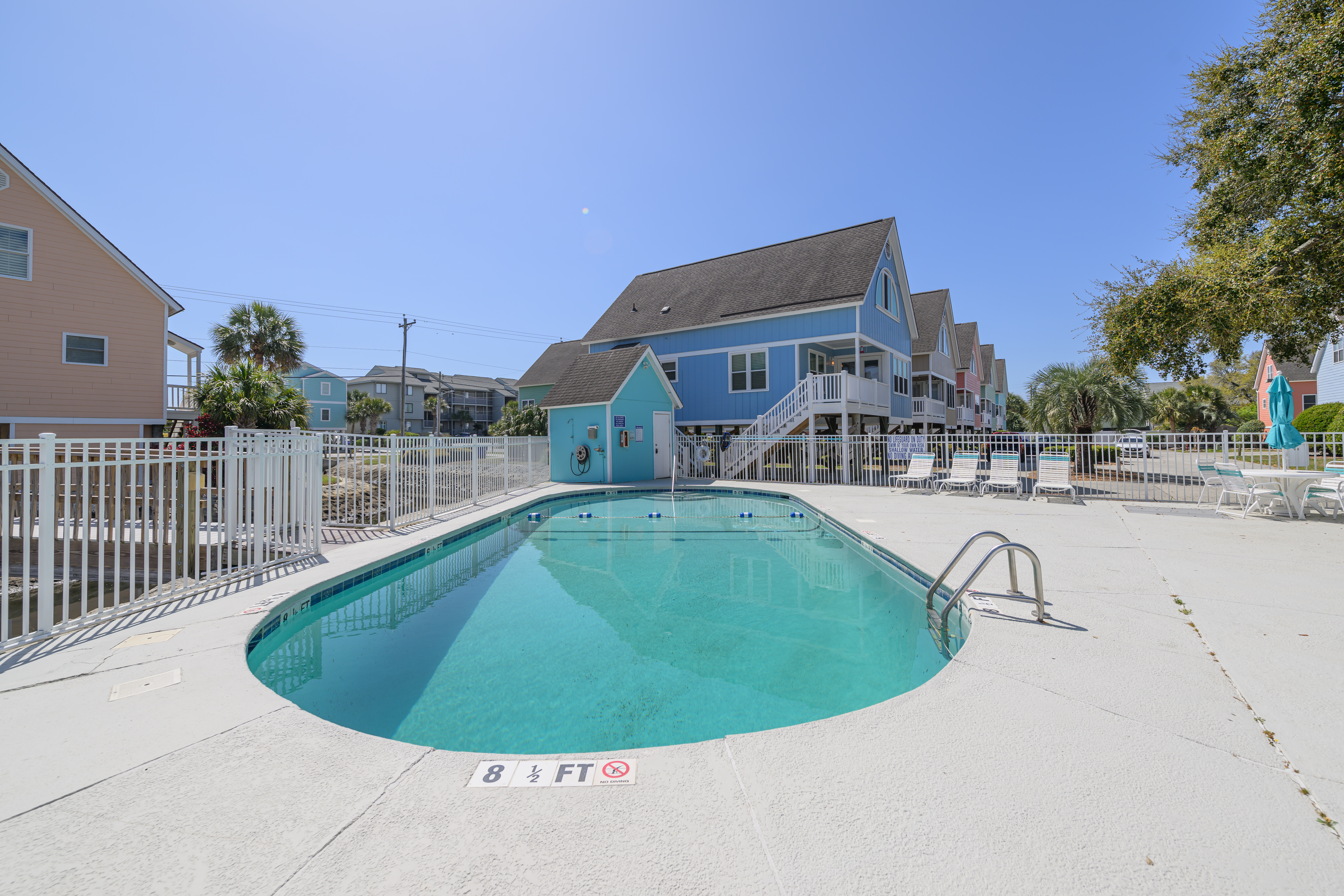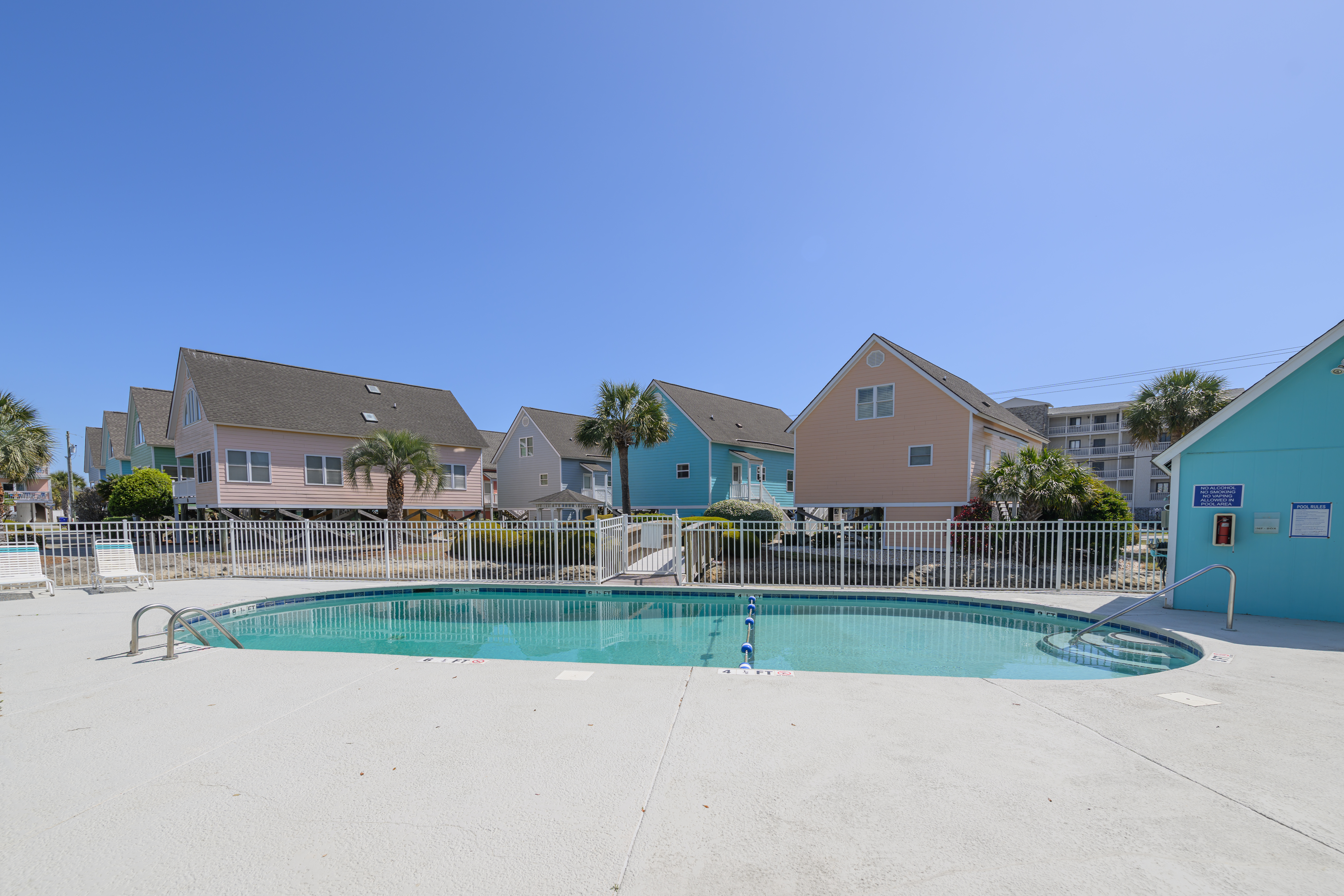 Community Outdoor Pool (Open Seasonally from April 1st-October 1st) - Professionally Maintained, Covered Porch on Front, Parking Underneath, 2 Parking Spots, Outdoor Shower, Non Smoking Unit, No Pets Allowed. Golf Carts Are Permitted (Must be Parked In Carport Area) but Trailers and Motorcycles Are Not Allowed. This property has 2 exterior surveillance cameras located in the driveway and at the front entrance.