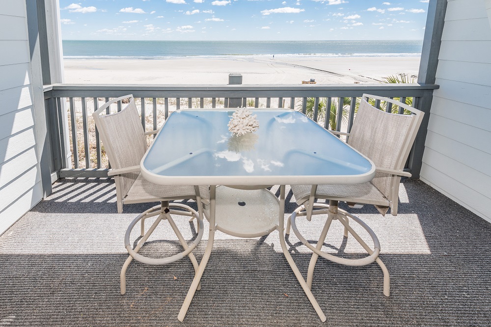 We love this condo! So SPACIOUS and CLEAN with cozy beds and lovely bedrooms and bathrooms. Master bedroom is private and just far away enough from the kids! Living area is roomy and comfortable. Kitchen is equipped with all you would ever need, including a blender that we put to good use! Views from the oceanfront balcony are breathtaking showcasing brilliant golden sunrises and rose-pink sunsets. We enjoyed many breakfasts and “happyhours” relaxing on the high-top chairs while watching rolling waves. The condo is close to lots of casual restaurants, sports bars, a beach shop and an adorable main street. No driving stresses! We walked to dinner and then strolled back to the condo on the moonlit beach. It doesn’t get much better than that! We highly recommend this unit and will return soon!- Maryellen C from Surfside Beach, Posted: 01/21/2021