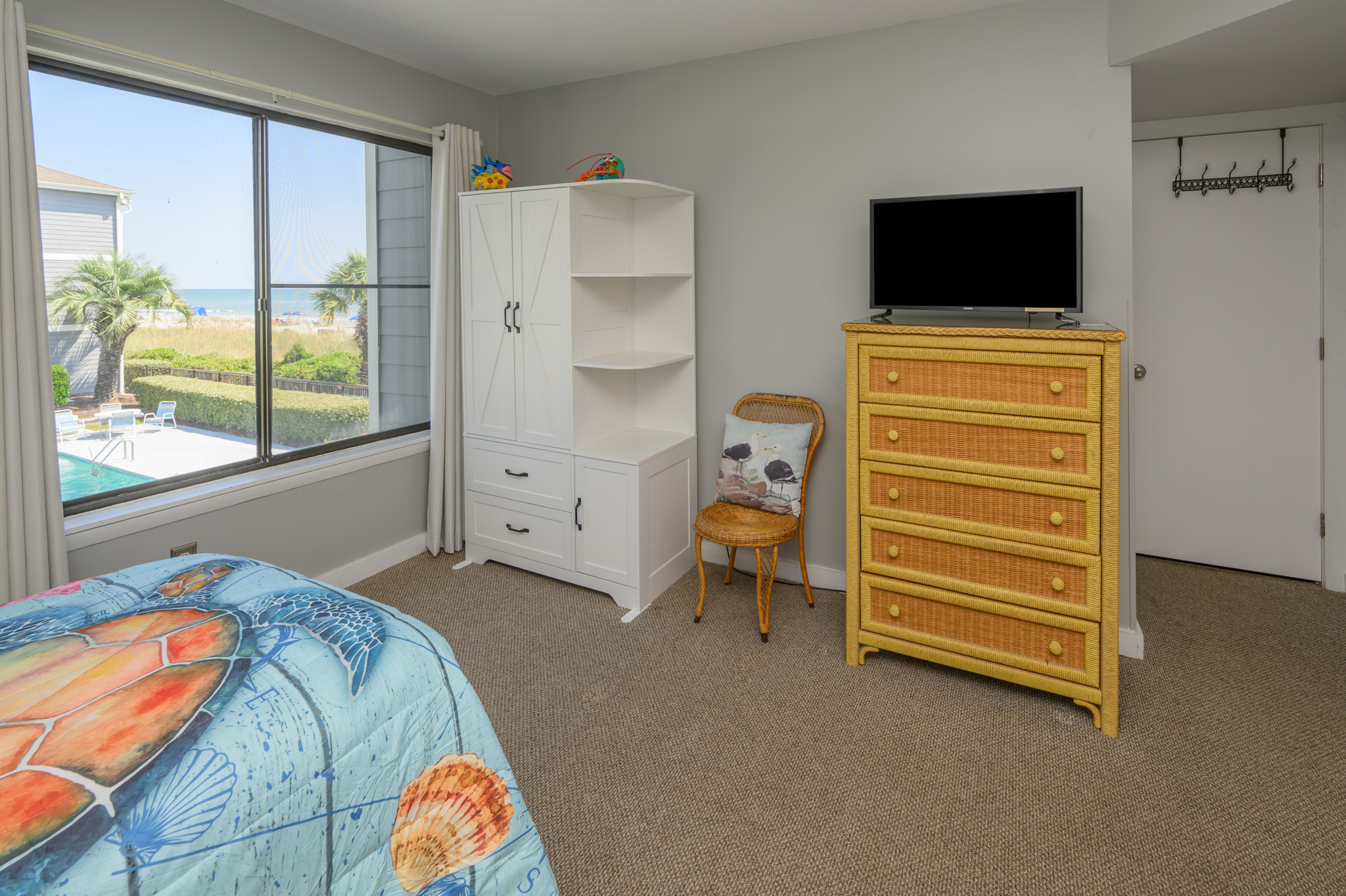 What a wonderful time we had! We already booked another stay in this condo! My wife, son and I spent a week here with our friends. It is nicely decorated with an upbeat beachy flair and has a large balcony where we ate breakfast and relaxed in the early evening after a full day at the beach. What an outstanding view of the ocean and fluffy pink clouds! The beach right outside was very wide and never crowded, which allowed the kids a large area to play corn hole, frisbee and football. And we all loved the big pool! The condo’s location in Surfside Beach is the best! It’s a short walk to casual restaurants and shops or a short driving distance to more restaurants, shops and really fun attractions for the kids and us adults! The condo has all the conveniences of home including a fully equipped kitchen, washer/dryer and extremely comfortable beds and living room furniture. You won’t be disappointed!- Chad G from Colorado, Posted: 05/26/2021