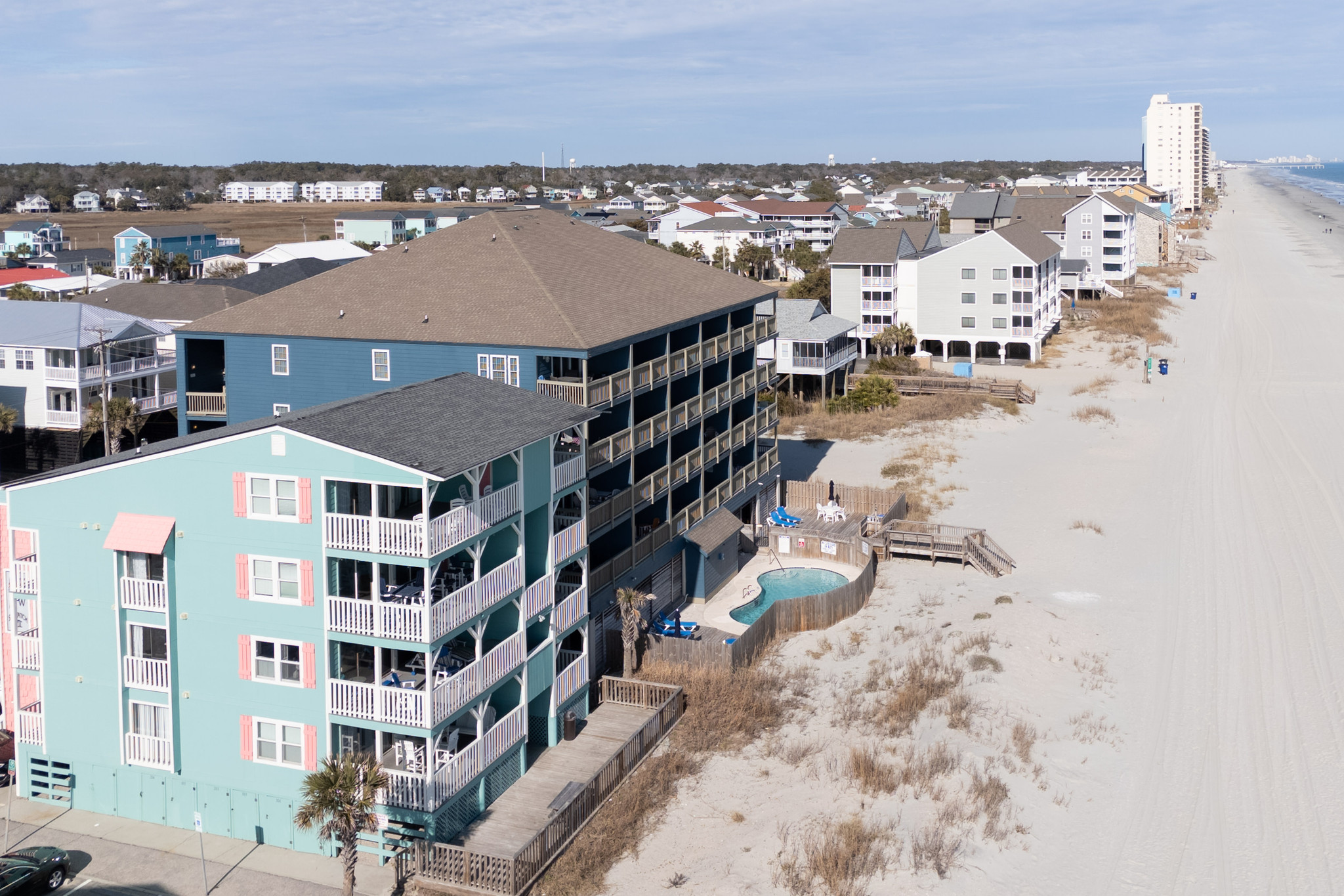 3rd Floor Ocean Front End Unit, Community Outdoor Pool (Open seasonally from April 1st-October 1st) - Professionally Maintained, Private Oceanfront Balcony, 1 Parking Spot, Elevator, Outdoor Shower, Trailers & Motorcycles are Not Permitted at Complex, Non-Smoking Unit, No Pets Allowed
