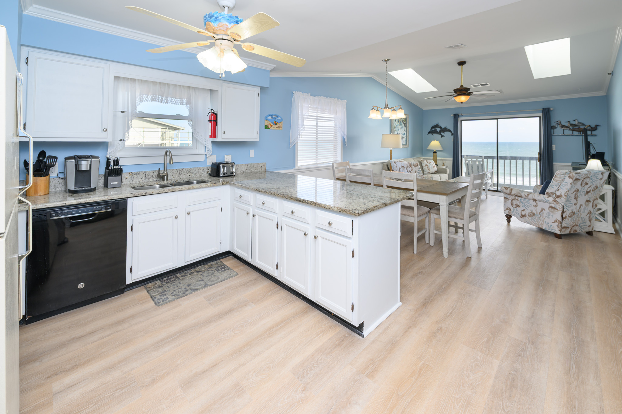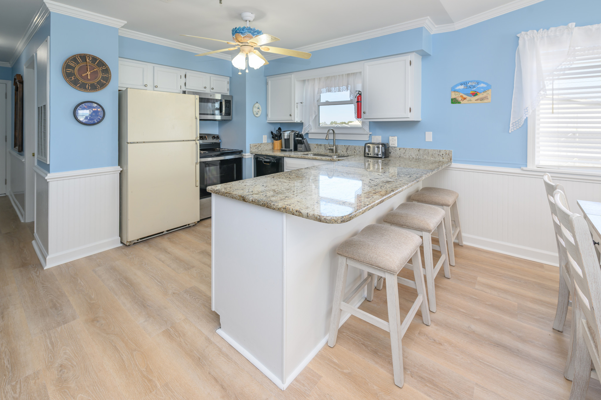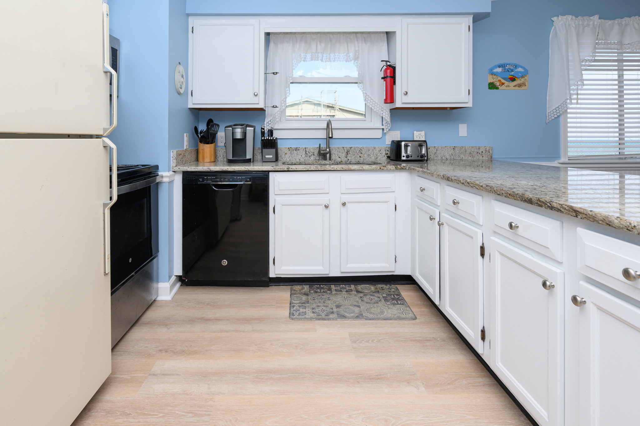 LVT Flooring (January 2026), Internet, Televisions, Heat & A/C, Washer & Dryer, Range & Oven, Refrigerator, Dishwasher, Basic Kitchen Amenities. All bedding will have a mattress cover, pillows and comforter or bedspread. We also provide a small bar of soap at each sink, one roll of toilet paper in each bathroom, and a trash bag in each trashcan. Guests should be prepared to provide any of these items as needed beyond what we supply. Guests are also responsible for providing detergents, spices, salt & pepper, sugar, etc., as needed.